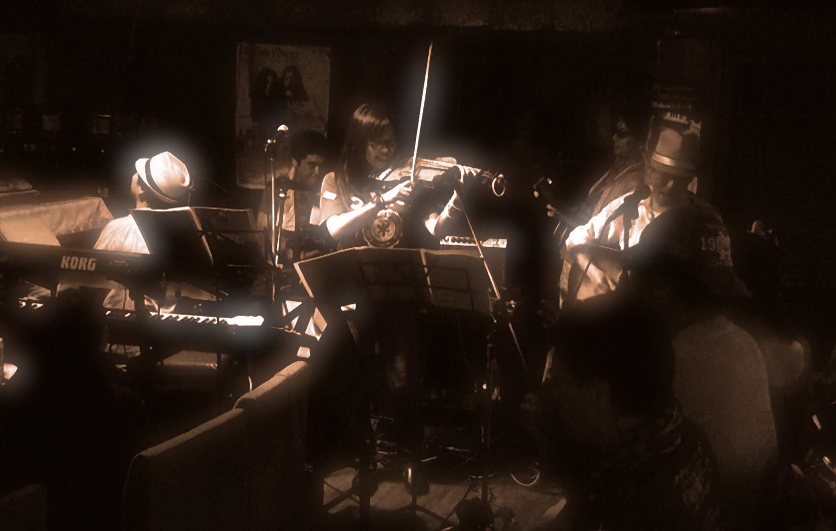 チエちゃん(Vo)、モリユウさん(P)、マスター(Gt)、クウガさん(Dr)。