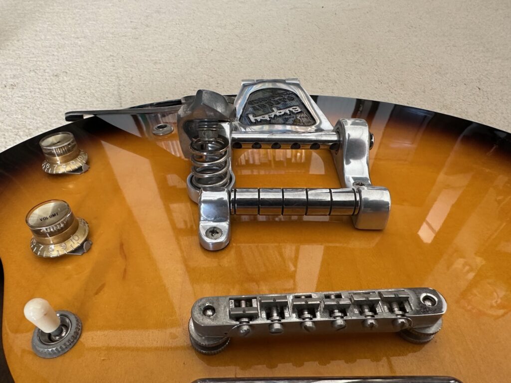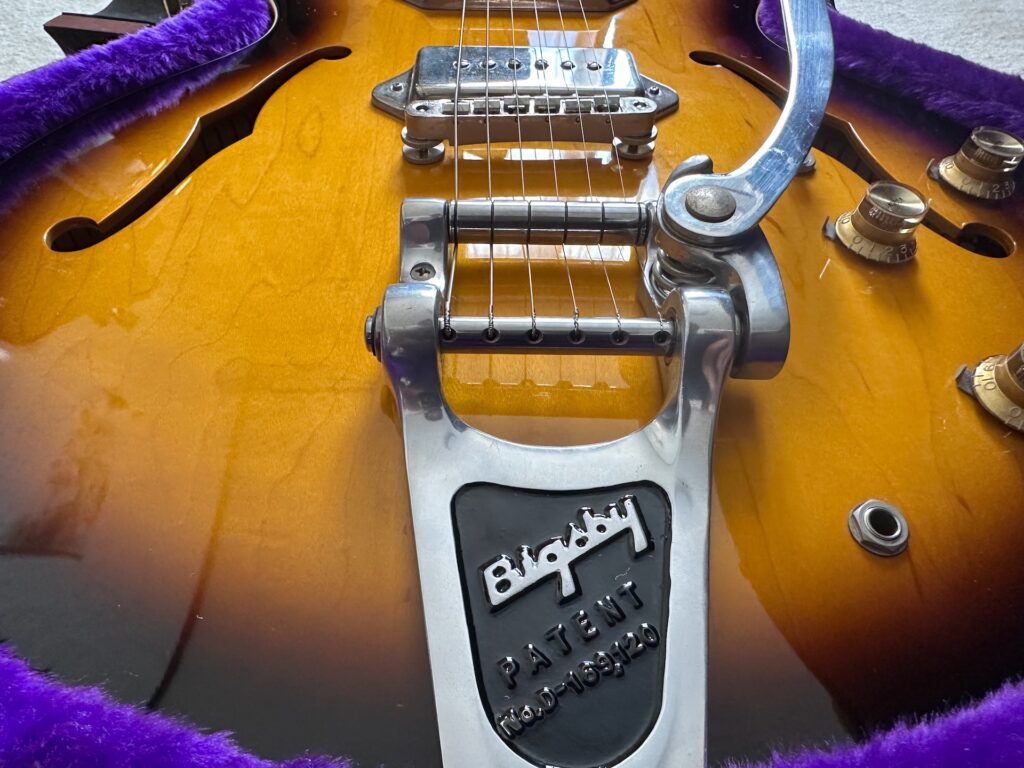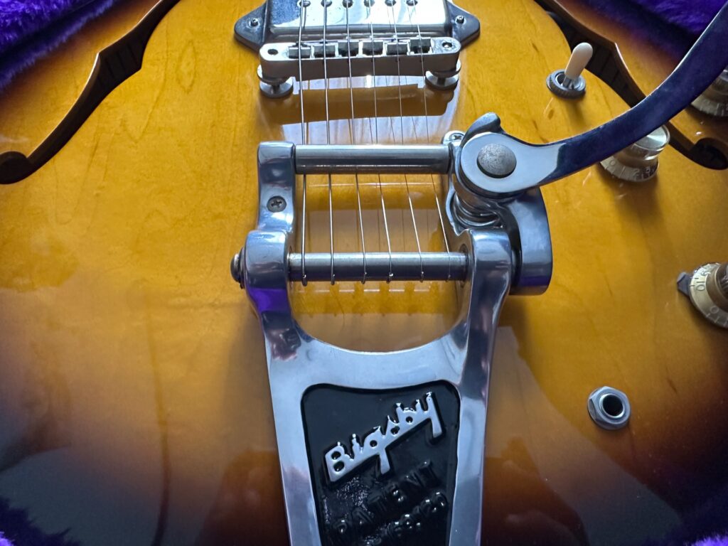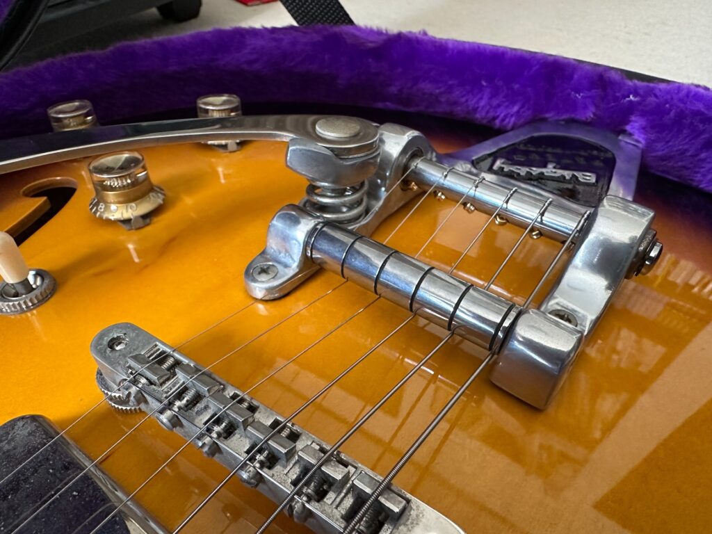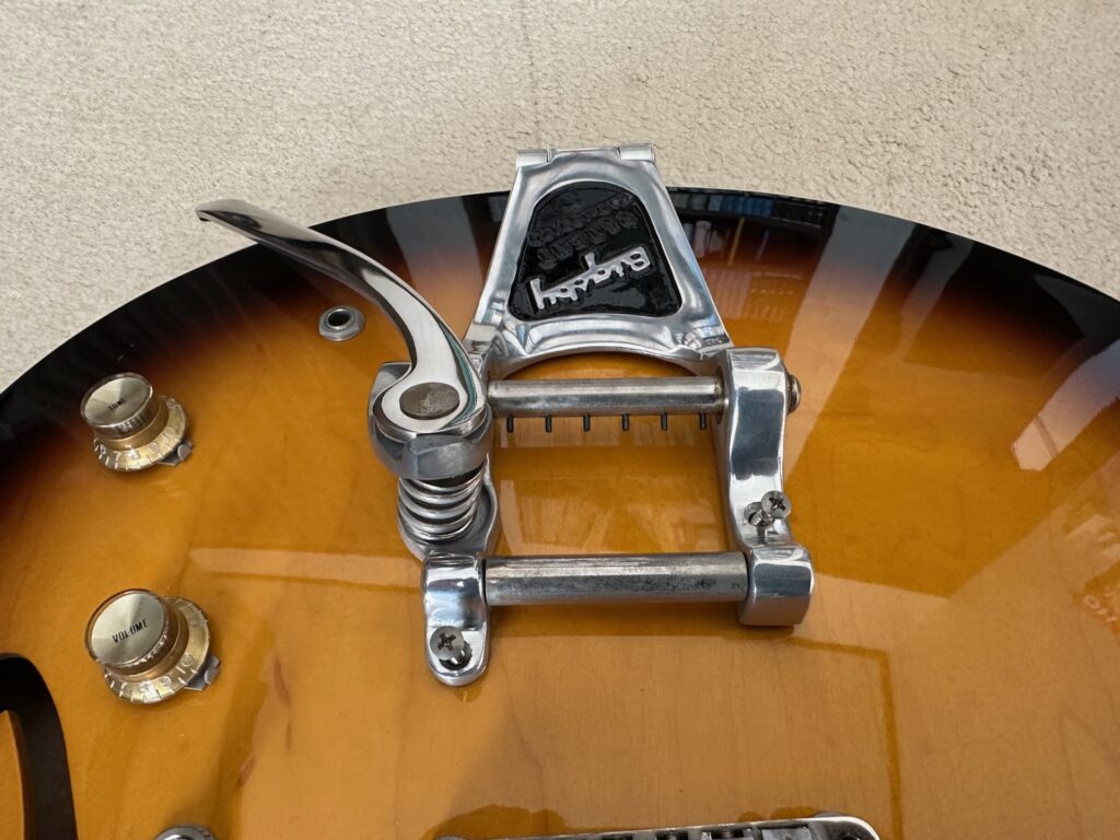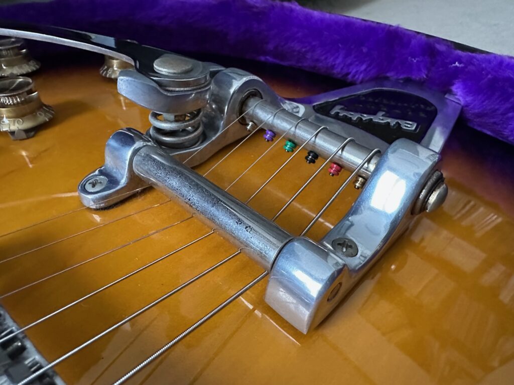 ビグスビー付きのギターは見た目がゴージャスだ。装着するギターによって似合う・似合わないはあるが、僕としてはCASINOにはビグスビーが付いていてほしい。Gretschのギターには必須。ES-335系は付いていてもいなくてもいい…という感じ。