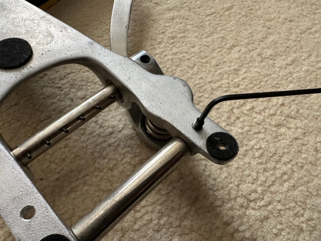 7. テンションバーのいもねじを締め込む。ねじをシャフトに当てて止めているだけなので、シャフトが動かないように多少トルクを掛けて気味にしておいた方がいい。