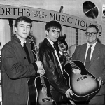 ビートルズの来日50周年に合わせて2016年に島村楽器がオーダーしたJ-160E。1962/64年の仕様が模されたもので限定75本の生産だったらしい。