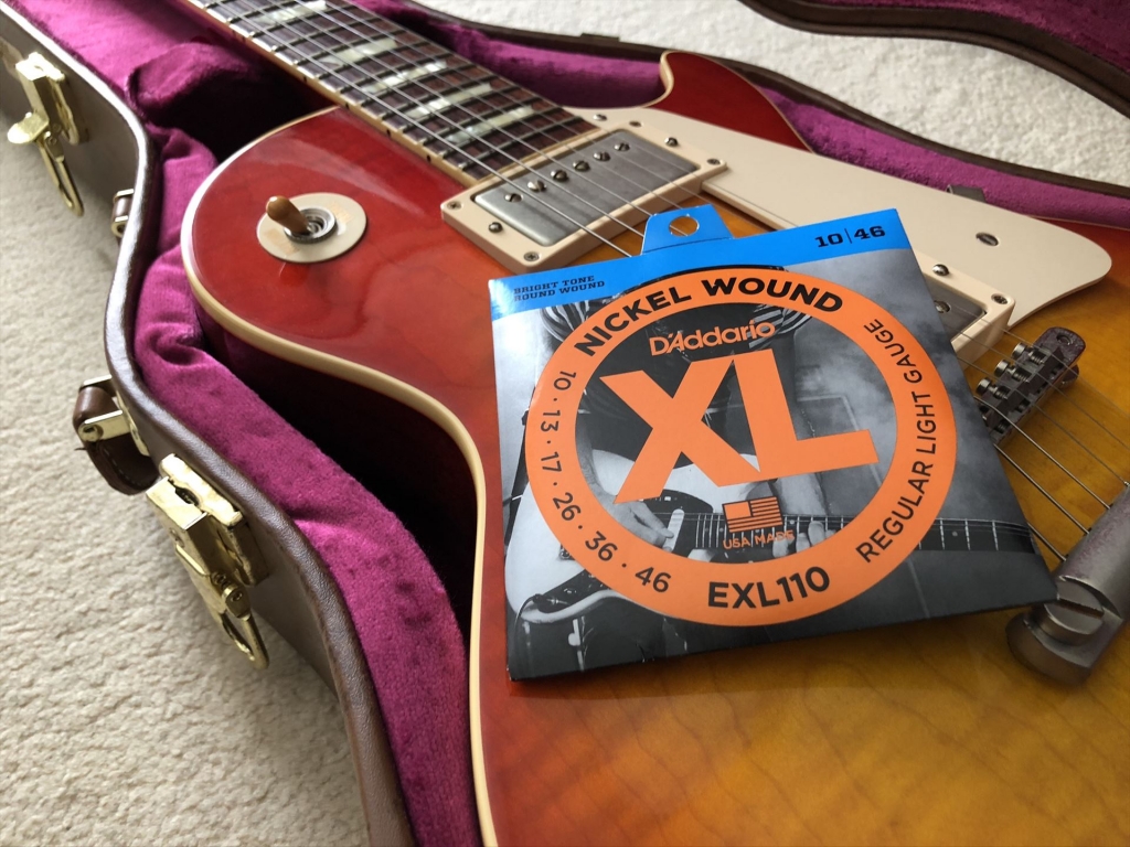 0.10のライトゲージ。店頭にはギブソンブランドの弦も置いてあったんだがダダリオの倍近くするので今回はダダリオで。