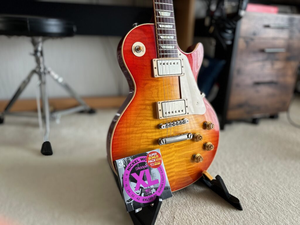 レスポールは10を張ってたんだが、同じハムバッカータイプのTokaiも10なのでキャラを変えるために今回は09にしてみた。